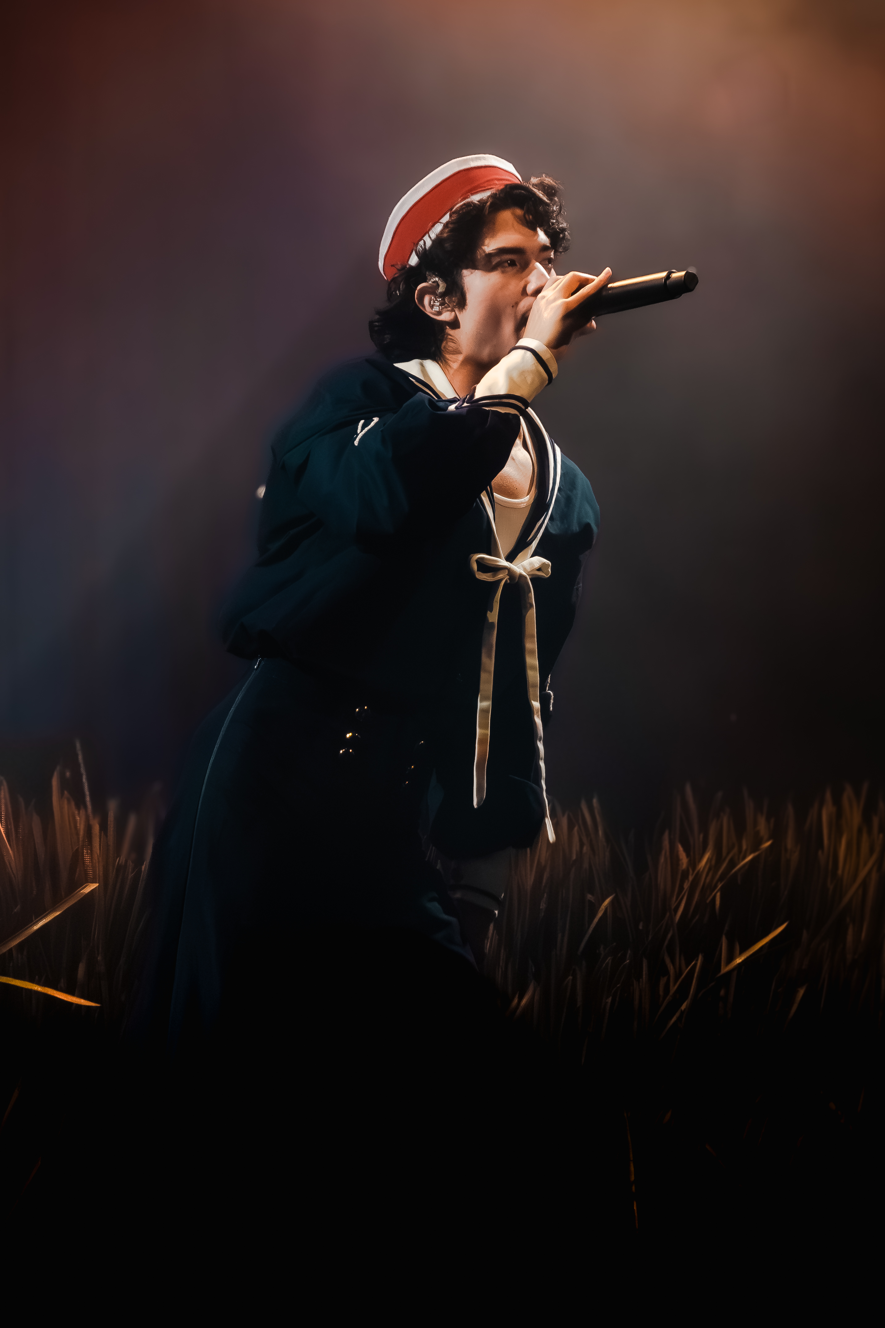 Conan Gray kicked off his show with “My World” from his latest album, Wishbone, drawing the crowd into his world. He smoothly shifted to songs from his previous three albums, including “Never Ending Song” and “Wish You Were Sober.” After changing out of his sailor suit and into sparkly striped pajamas, Gray took his first of two “naps” as the stage transformed into a cloud-filled dreamland, ushering in the show’s second act, titled “i got the short end of the stick.”