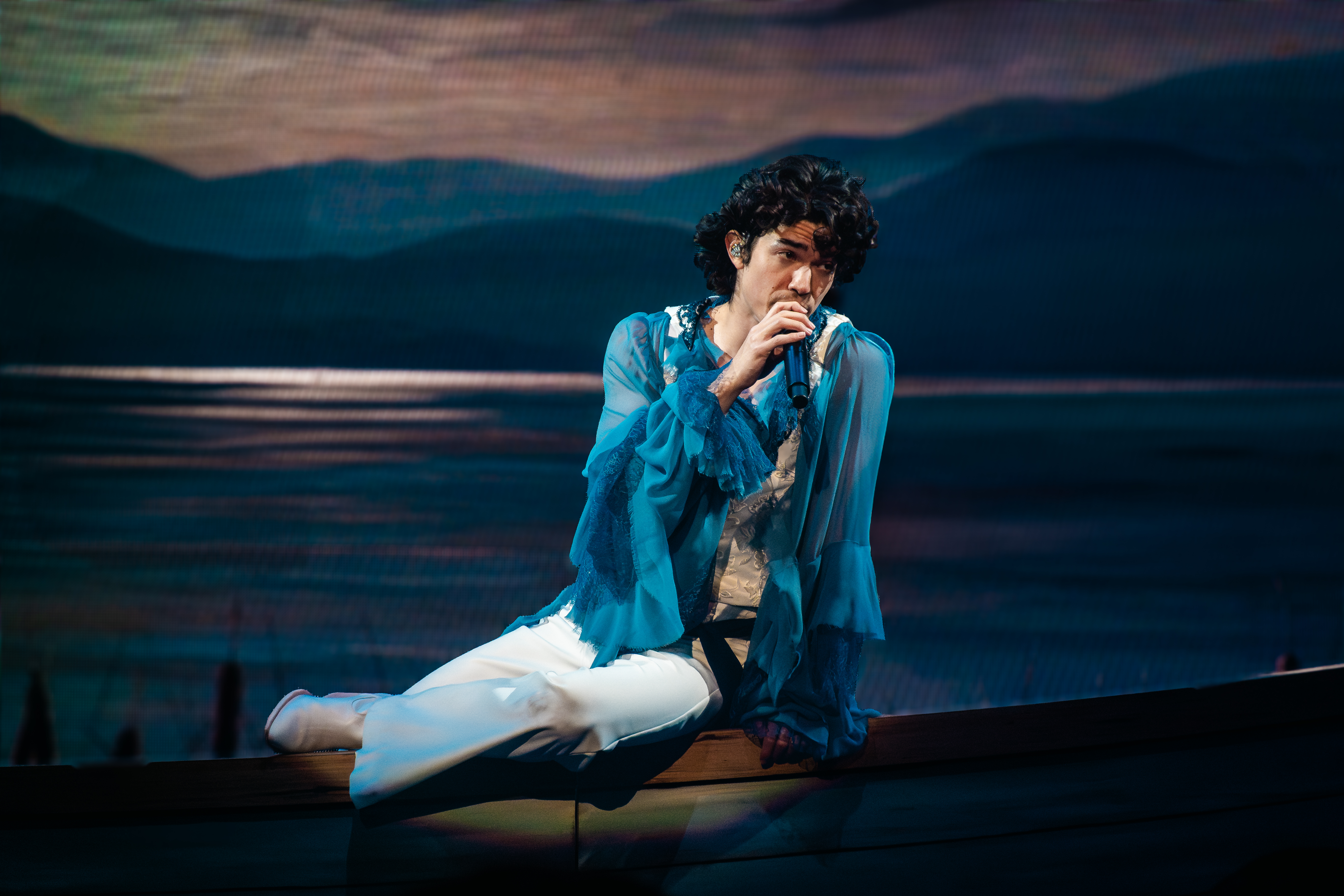 The show continues with more songs from all four of Conan Gray’s albums, including the emotional “People Watching” and “Nauseous,” before we are transported once again, this time to a lake. A boat is wheeled onto the stage, and Conan appears from behind it, wearing a new outfit reminiscent of a prince out of a storybook.