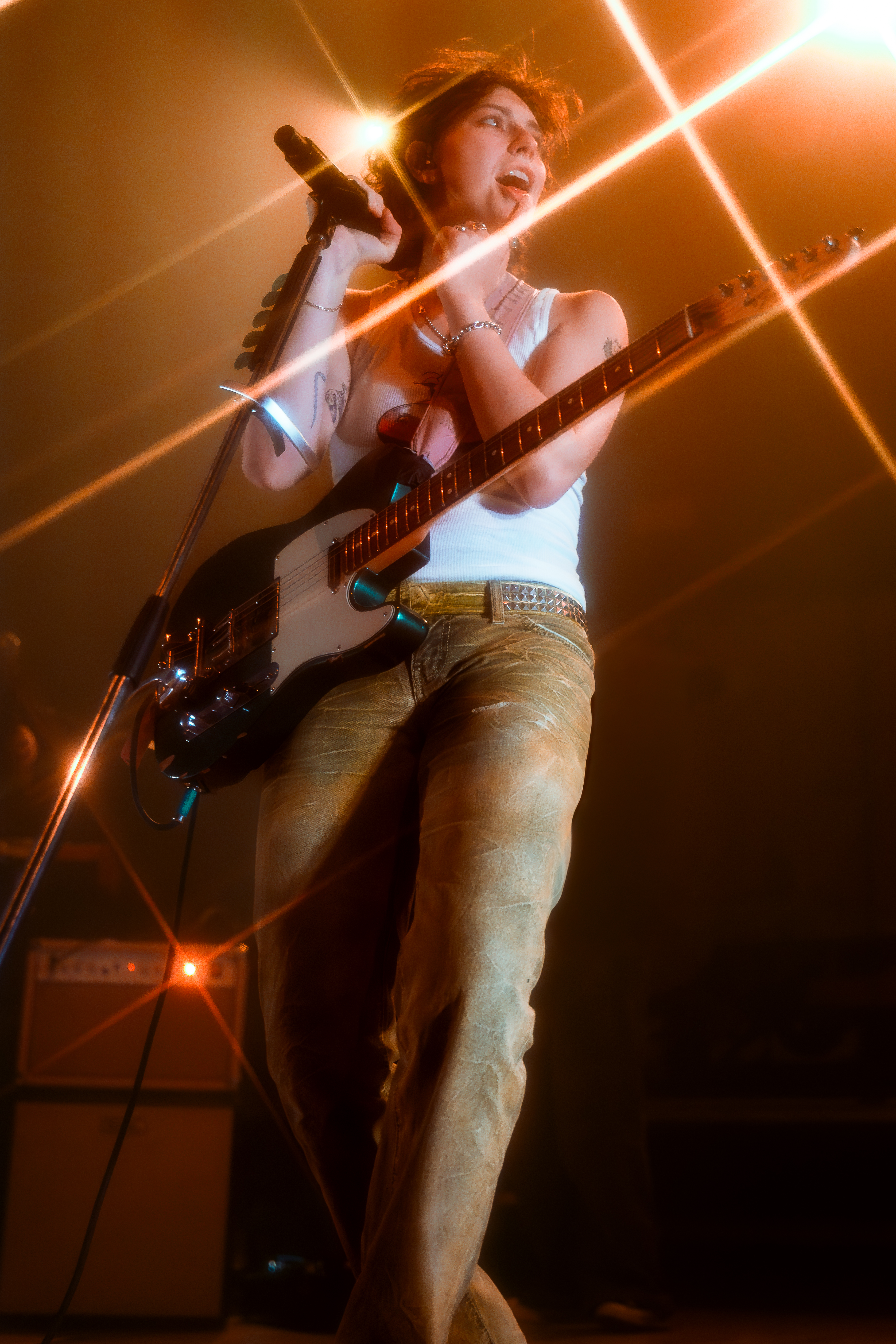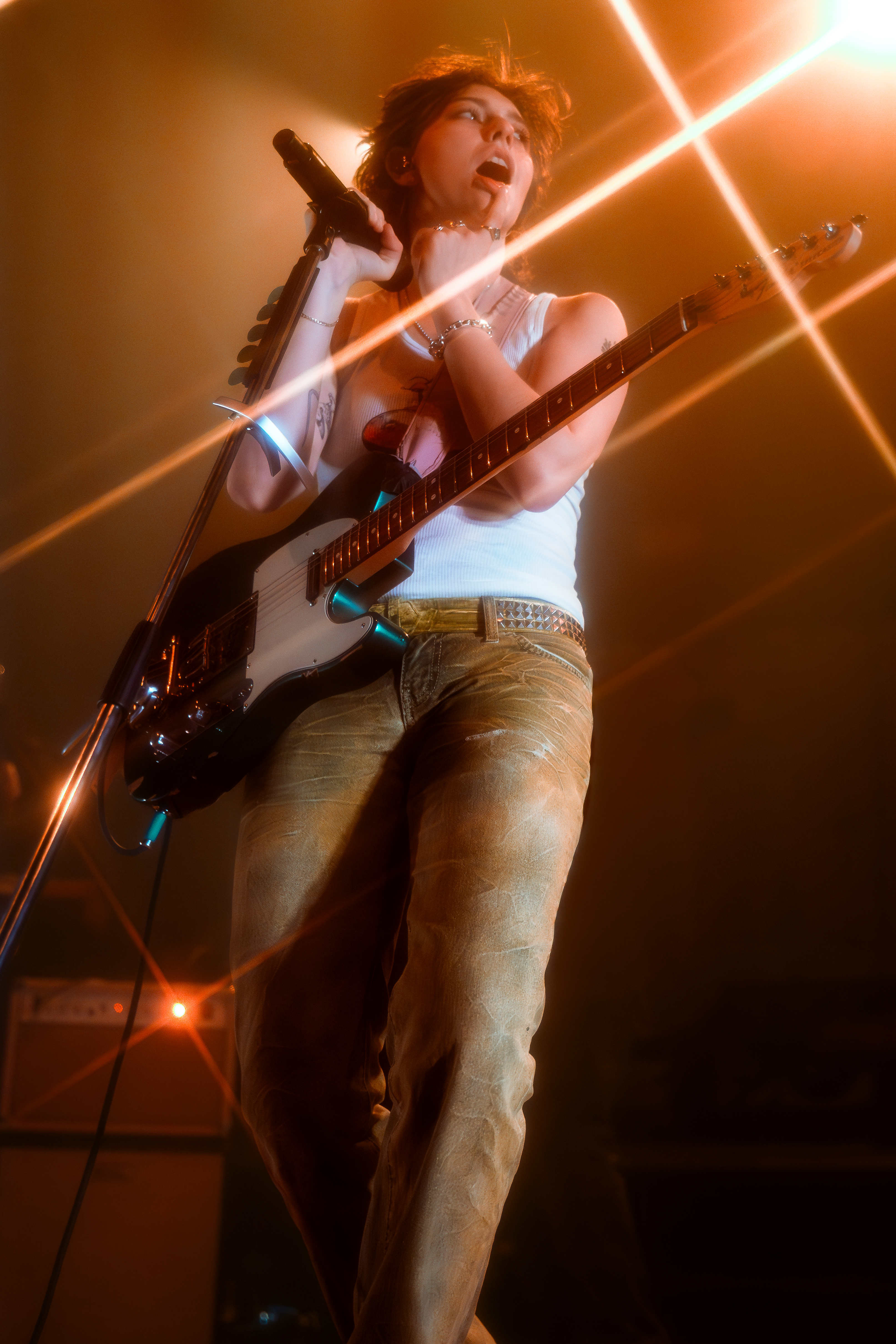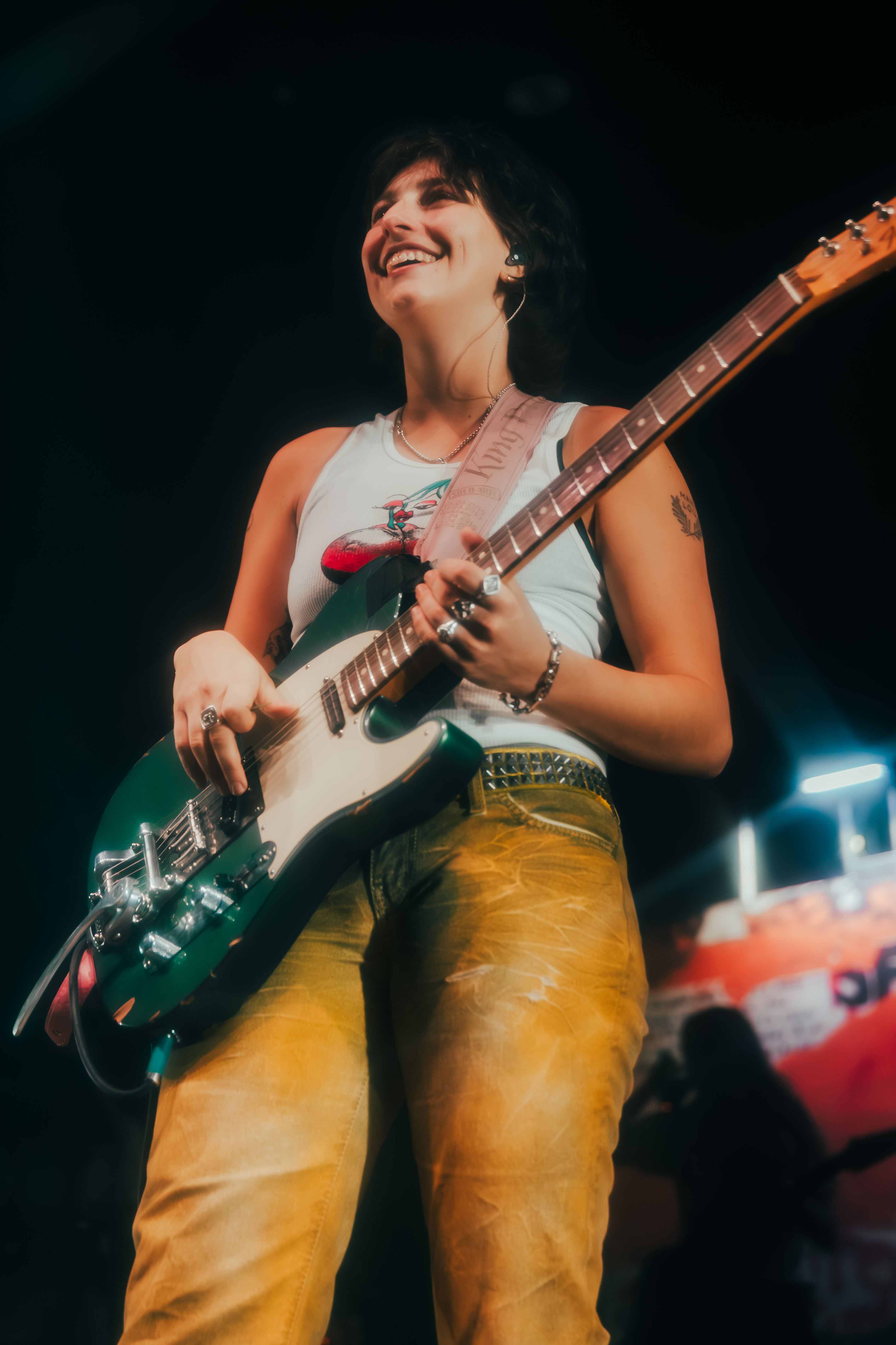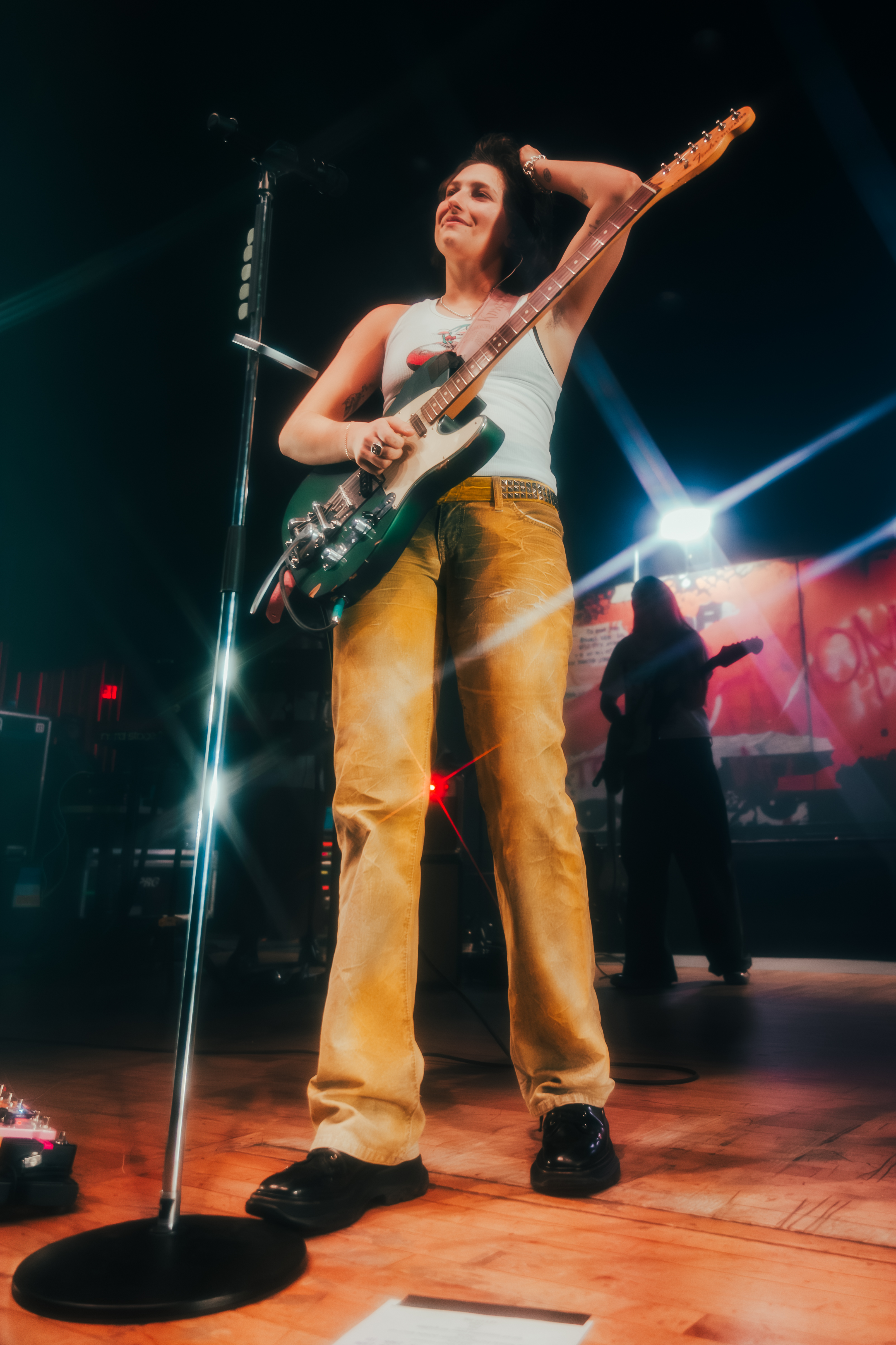 The show opened with a set by Sasami, and from the moment she stepped on stage, you could feel the energy through the venue. She blended wit with an incredible performance throughout her set, which opened with “Honeycrash,” drawing massive cheers as she screamed “Fuck ICE” and “Free Palestine.” At one point, Sasami challenged the crowd to start a “lesbian mosh-pit” for the seventh show in a row, and even led the crowd in opening a circle. Near the end of her set, Sasami jokingly asked the crowd if they were feeling any sort of “horny” before bringing out her French horn to play, before closing out with “Slugger.”