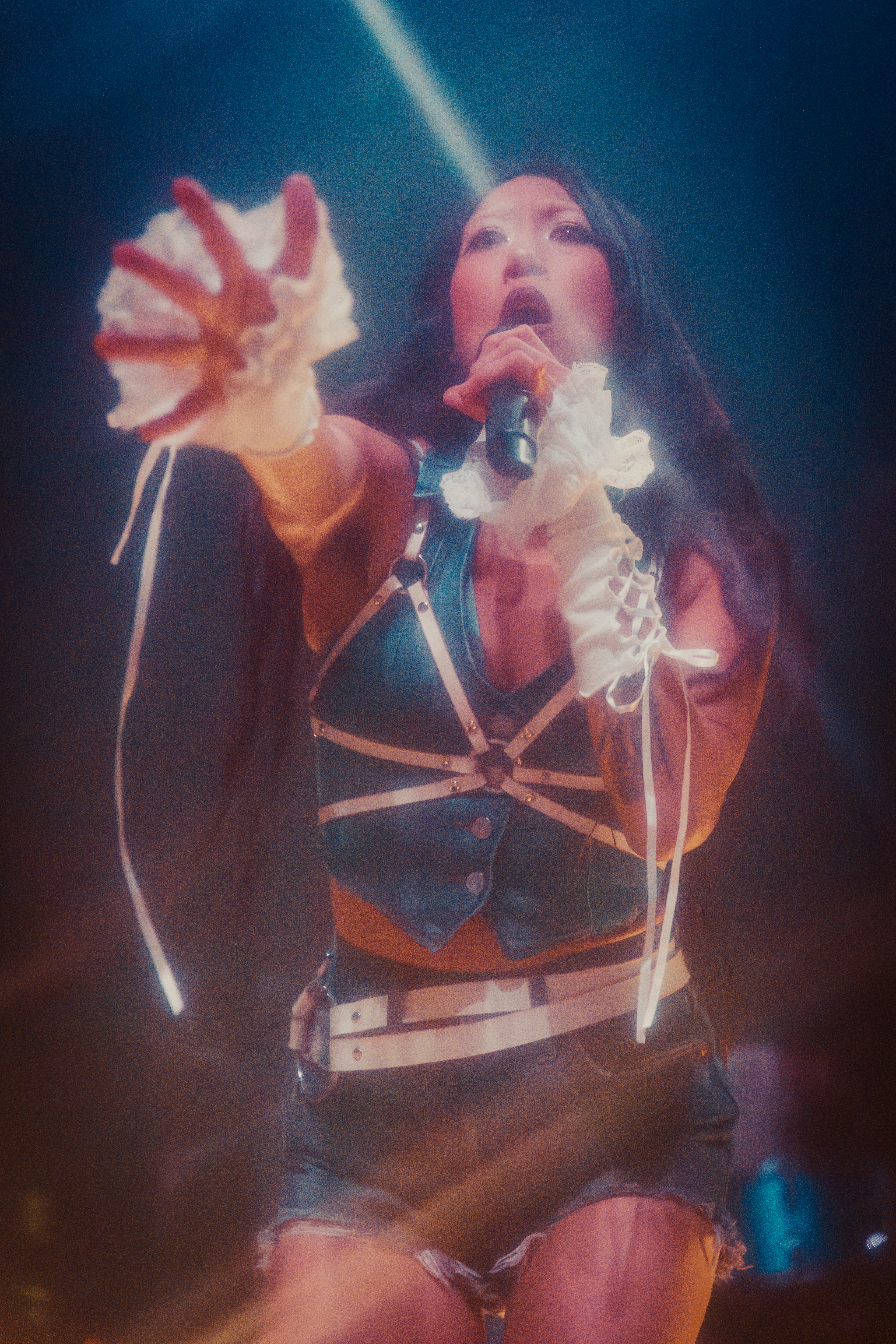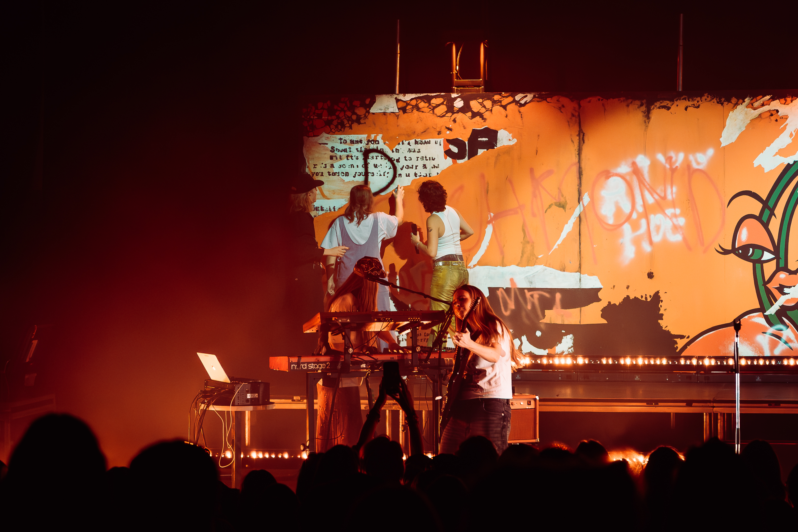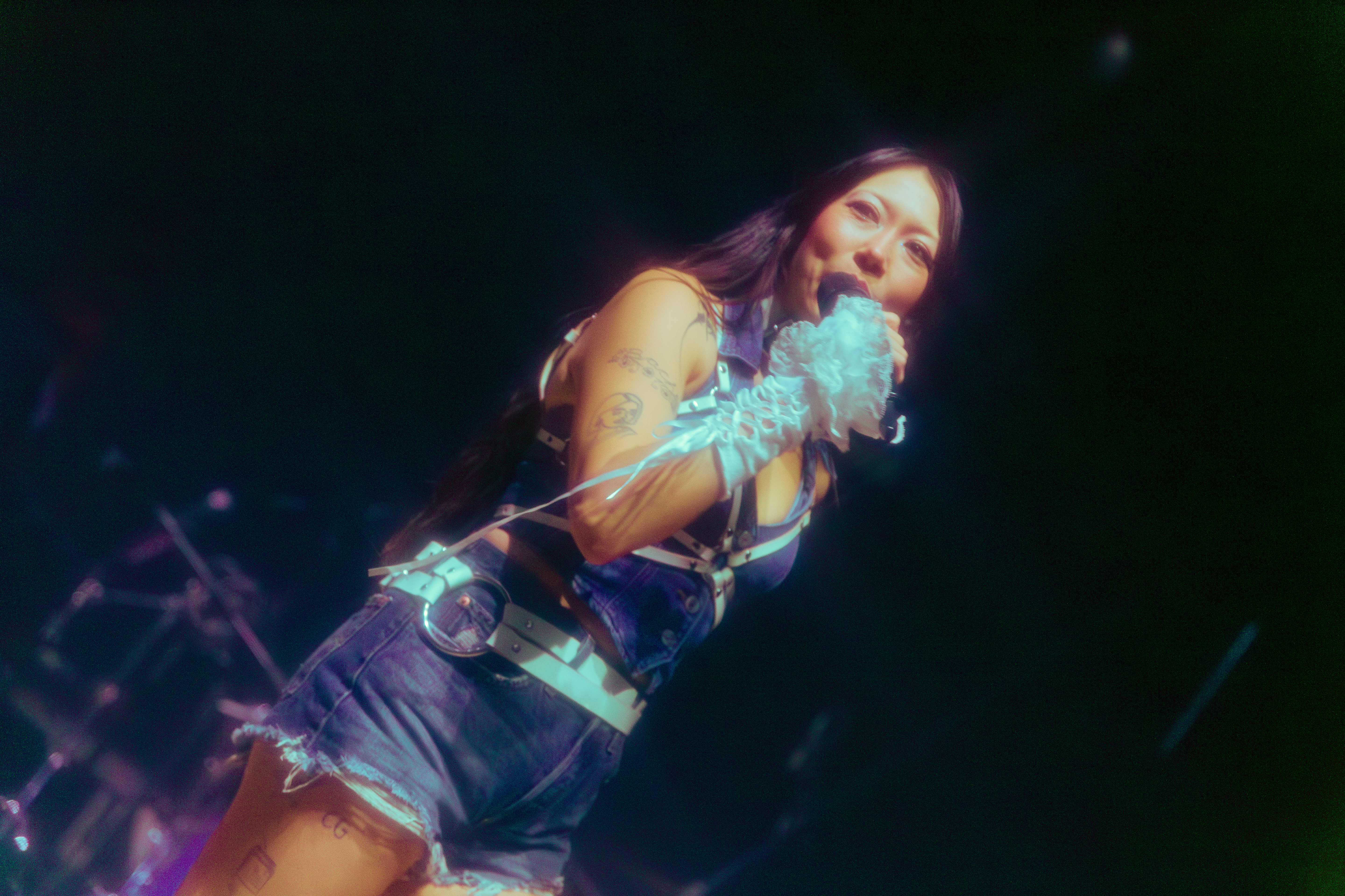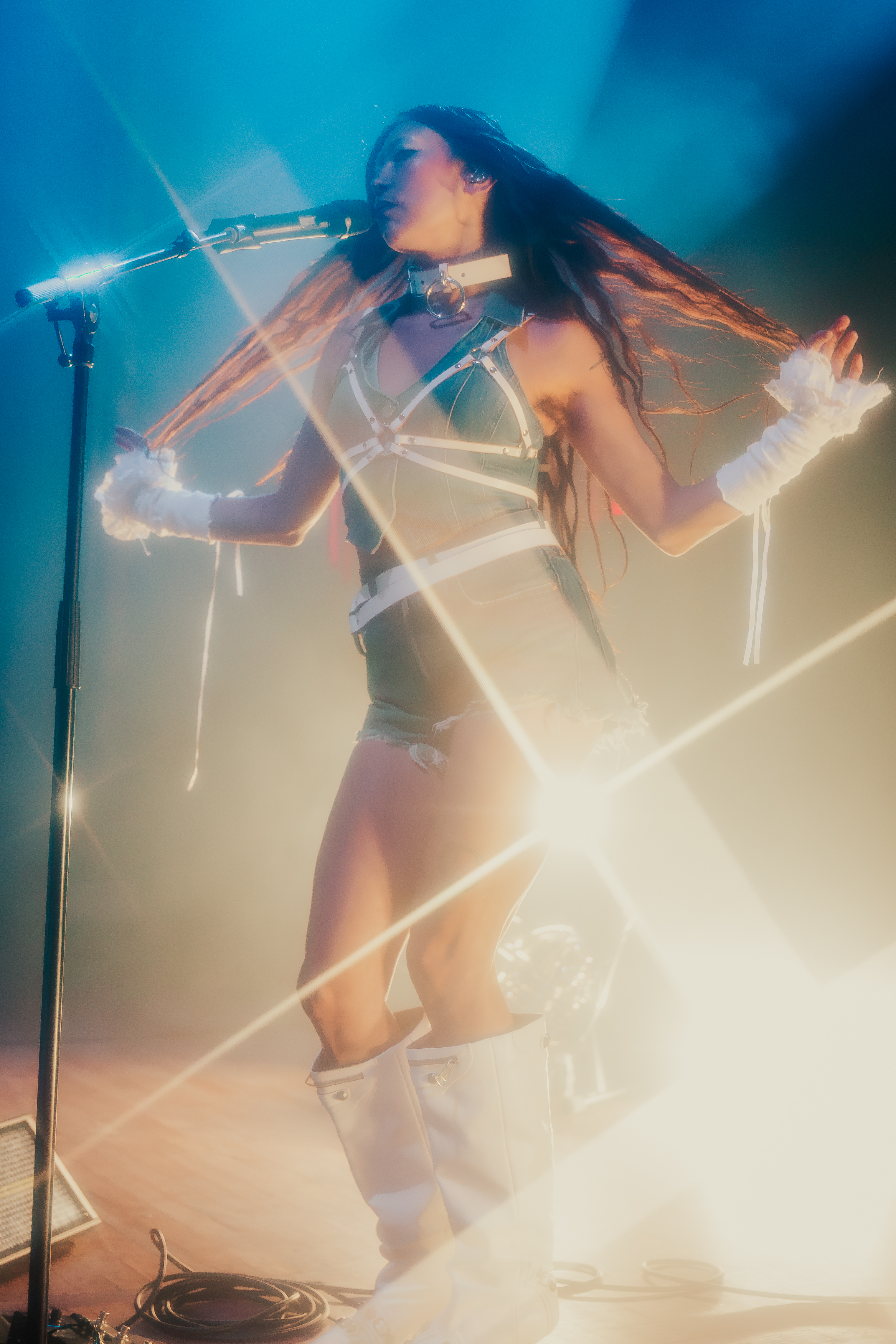The show opened with a set by Sasami, and from the moment she stepped on stage, you could feel the energy through the venue. She blended wit with an incredible performance throughout her set, which opened with “Honeycrash,” drawing massive cheers as she screamed “Fuck ICE” and “Free Palestine.” At one point, Sasami challenged the crowd to start a “lesbian mosh-pit” for the seventh show in a row, and even led the crowd in opening a circle. Near the end of her set, Sasami jokingly asked the crowd if they were feeling any sort of “horny” before bringing out her French horn to play, before closing out with “Slugger.”