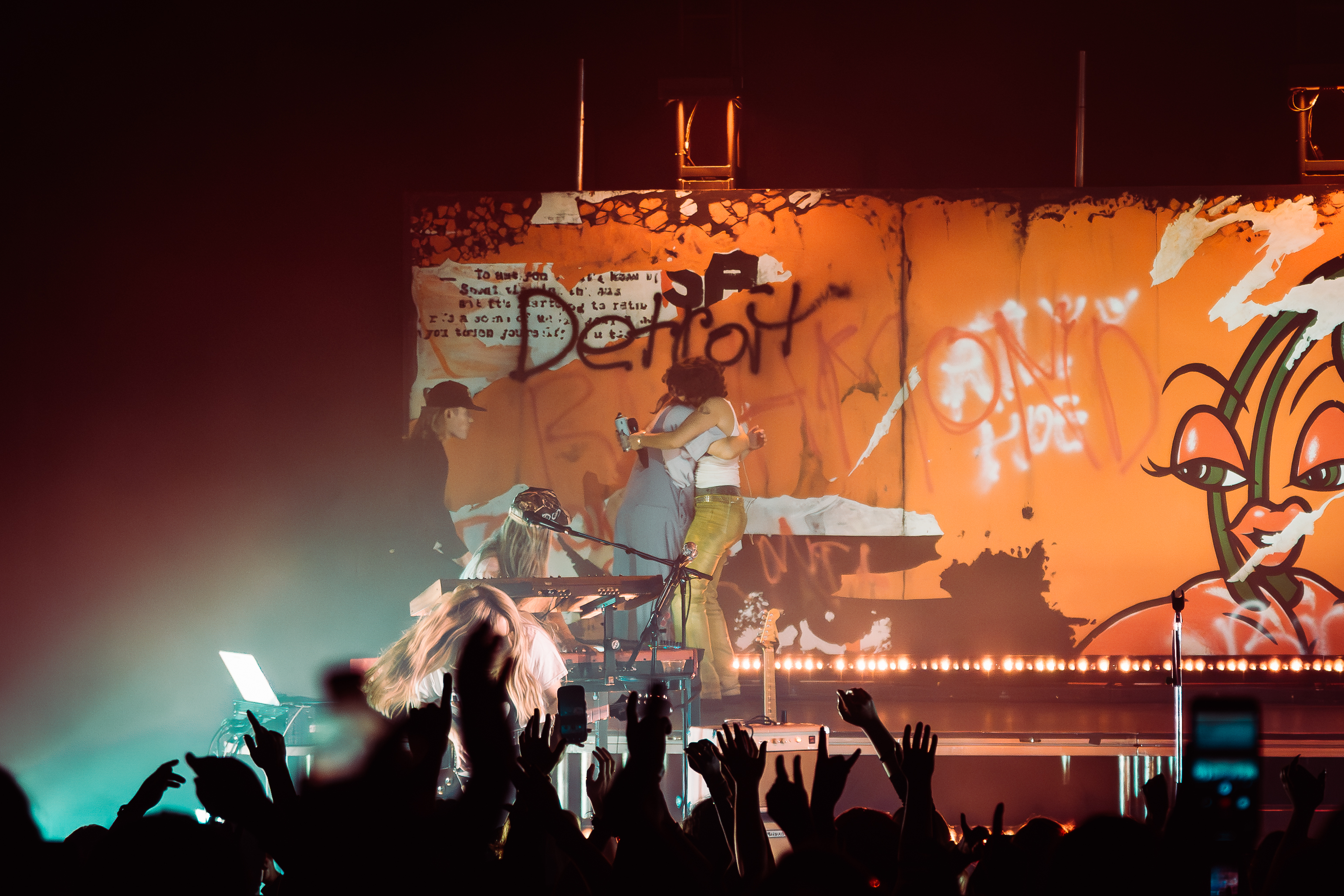 For the closing song of the set, King Princess played “RIP KP,” which had an extended outro for a very special moment: a fan would get to graffiti the backdrop with the city’s name. The lucky fan shared that they were at their first concert ever, and the crowd hyped them up as they spraypainted “Detroit” across the banner. This moment captured everything that seemed to make the night so special—connection, celebration, and the feeling that everyone in the room was part of something together.